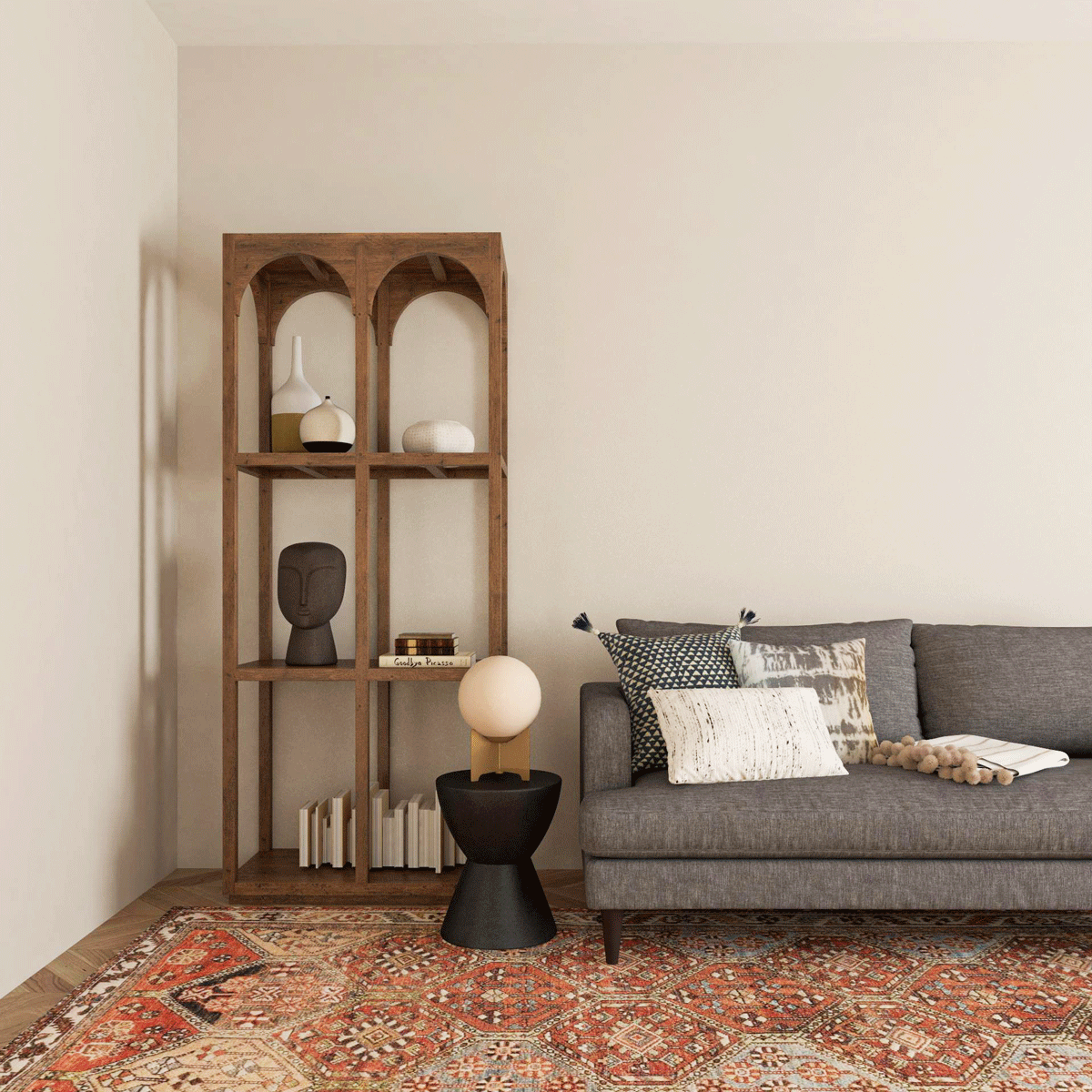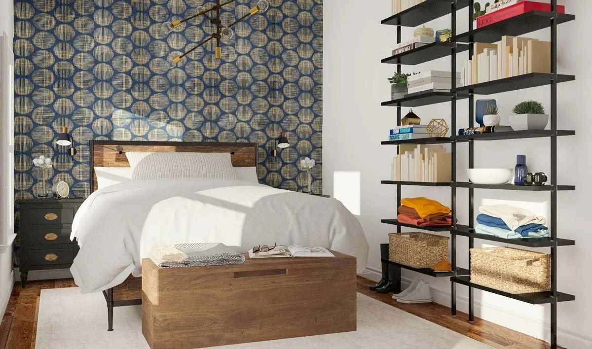 Stylist Tip: One of our favorite small space hacks for your bedroom is to try replacing your nightstand with a bookcase. This will triple your available storage without taking up any more floor space. Not to mention, replacing your nightstand means one less piece of furniture to buy!