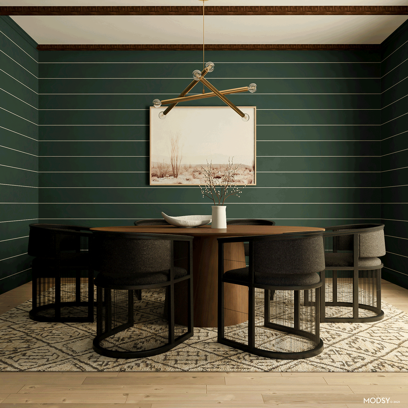 One other curveball: if you go for wood tables and chairs, make sure that neither one is the same color or tone as your flooring! If you’re running into this problem, consider layering in a dining room rug.