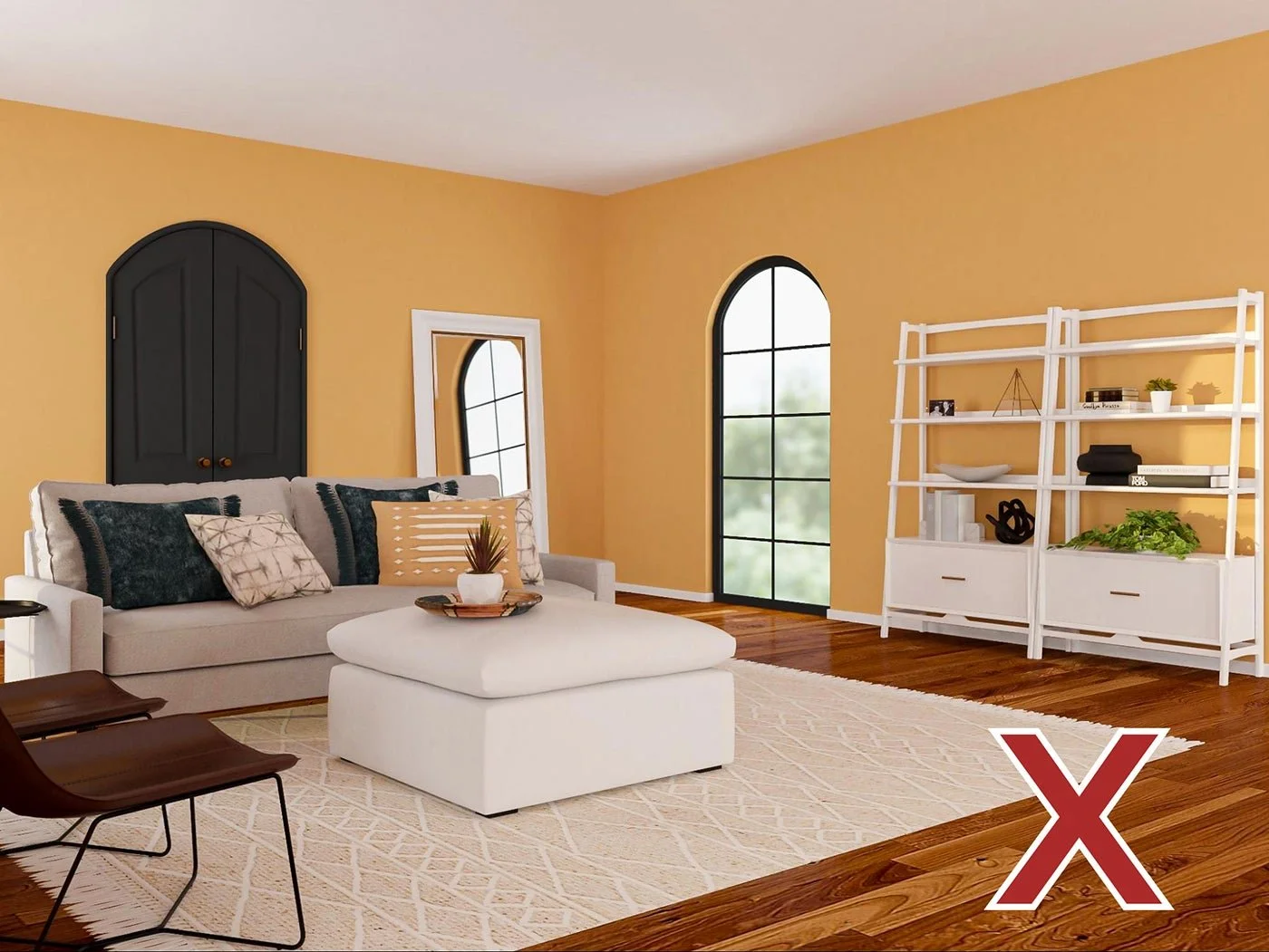 But back to the paint. With gray wood floors, a good guideline to follow is to stick to warm paint tones to balance out the coolness of the gray. Here are two do’s and one don’t for gray wood floors.