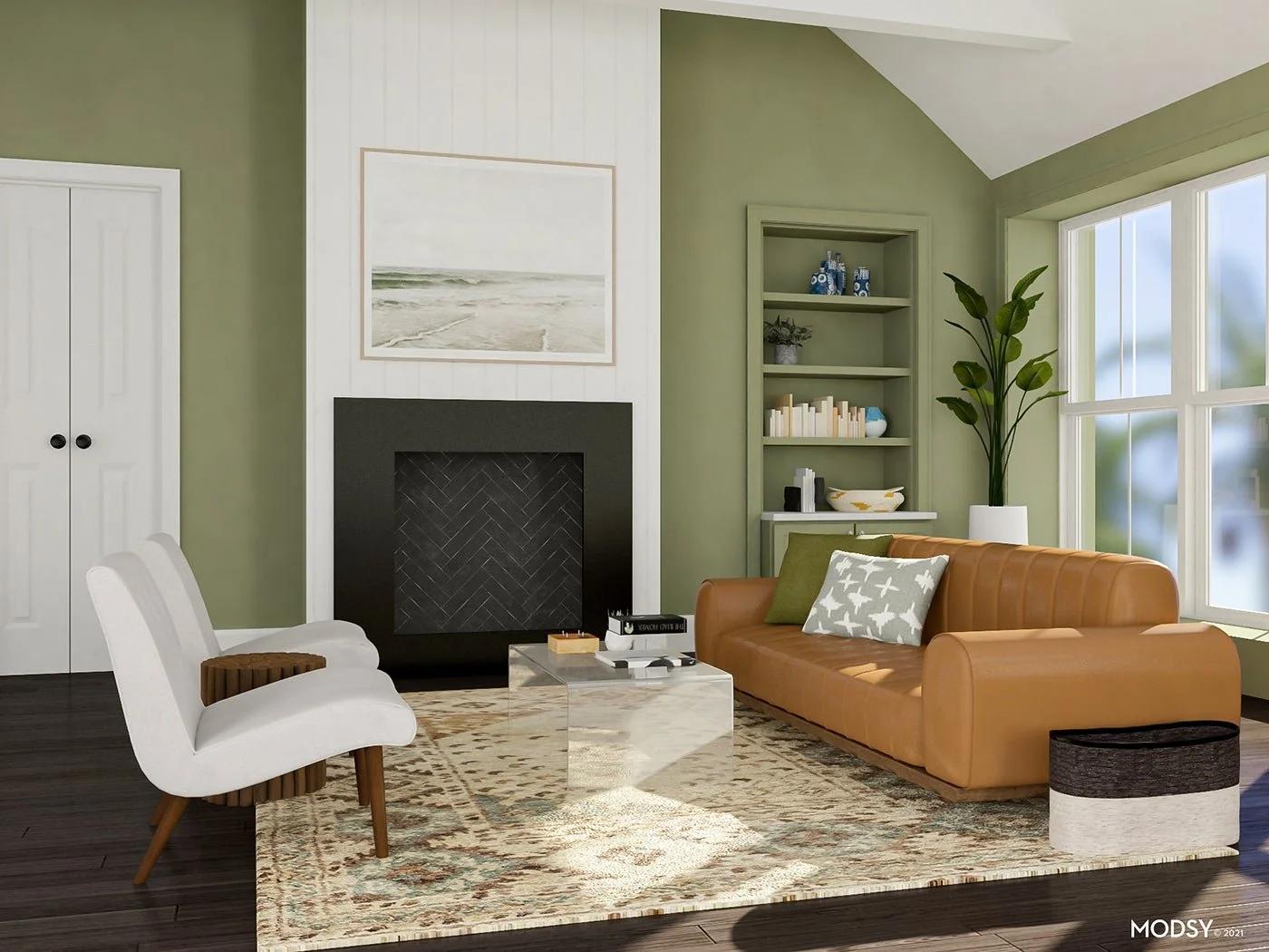 If you prefer a more saturated color in your home, consider going for a sage or olive green. These are calming hues that definitely add color but won’t suck out more light from the space. Earthy greens like this are great because they plays nicely with the coolness of dark hardwood floors while adding warmth, especially since olive greens have more yellow undertones than other shades of green.