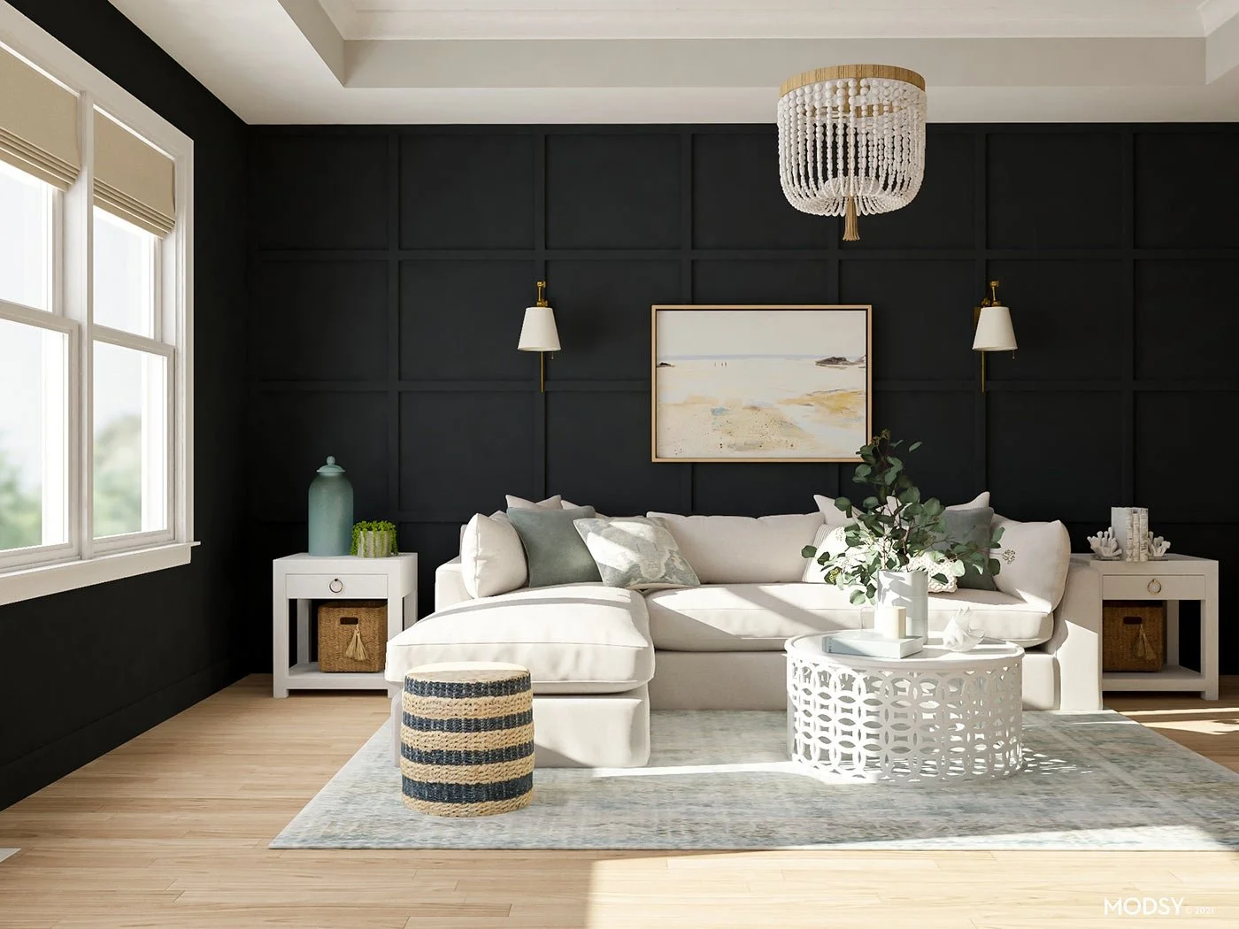 This is a great way to add visual interest to a space if you want a more minimalist look and don’t want to add a lot of extra decor. The dark tone helps add depth while still complimenting the light hardwood floors.