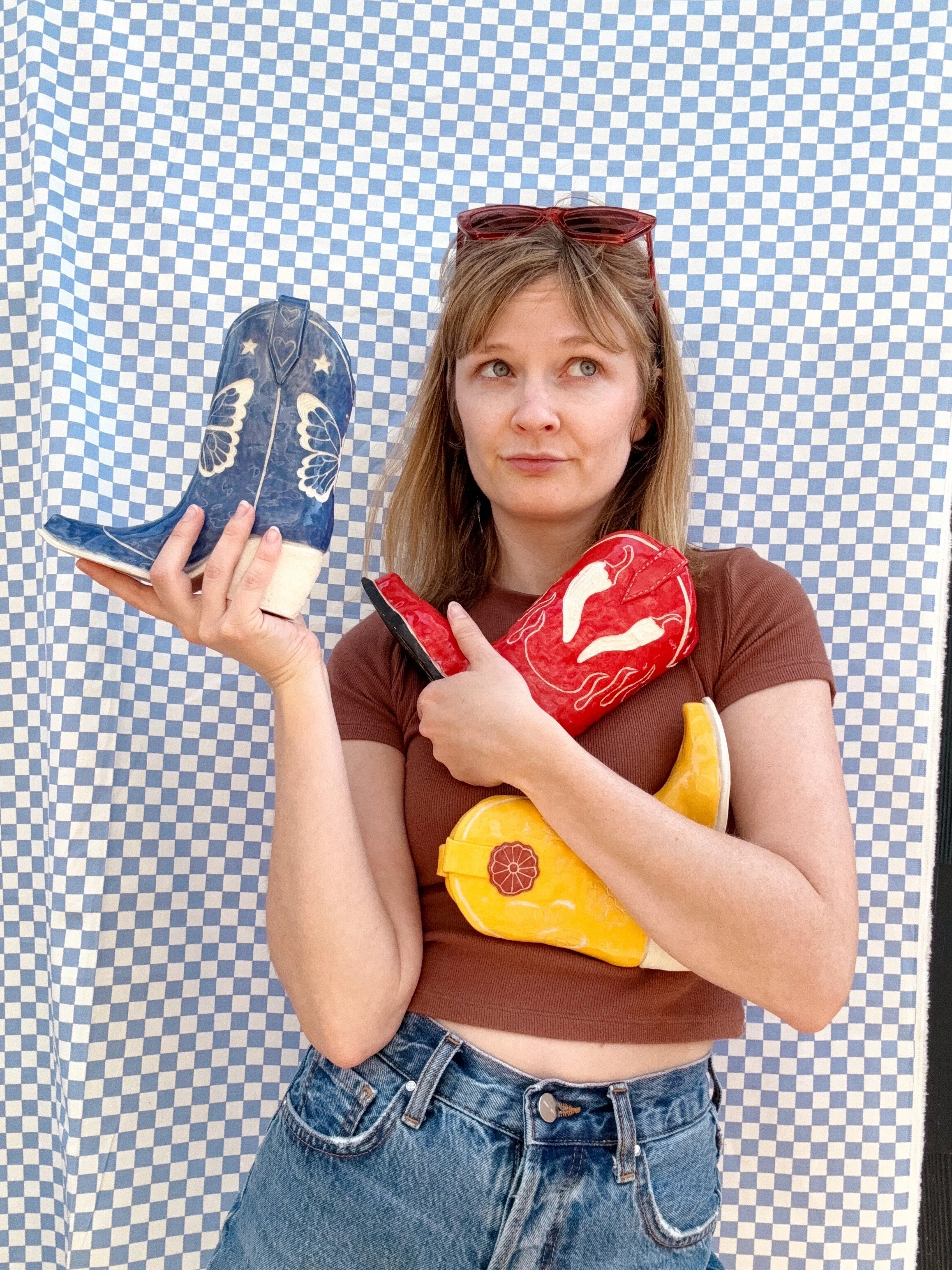 In the fall of 2023 I began sculpting ceramic cowboy boots as a creative side project. After a dozen or so “orders” from friends and family, I decided to launch it into a mini ecommerce business. Thus, Horse Girl Ceramics was born! More than boots, it was my playground for end-to-end brand building: I developed the concept, created every product by hand, built the digital presence, and grew an organic audience of 3K+ followers.