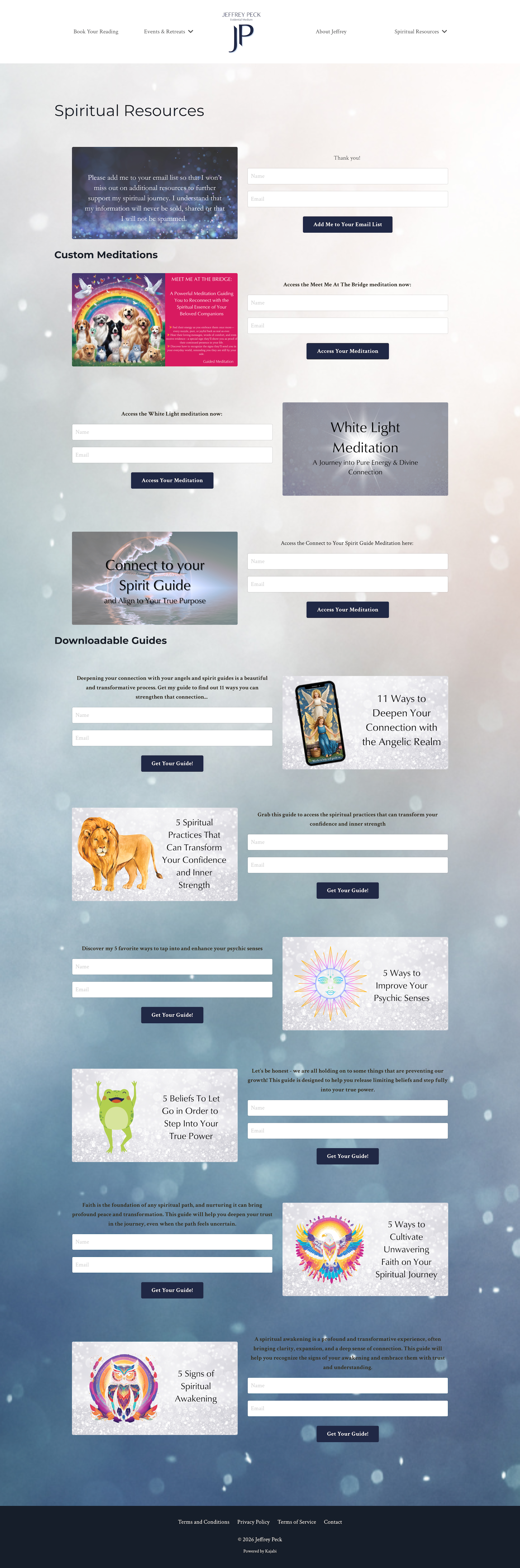 Jeffrey Peck is an evidential psychic medium offering virtual readings and in-person group sessions. In January 2026, Jeffrey wanted to migrate his existing website from Kajabi to Squarespace. I assisted this transfer, preserving the functionality and architecture while giving the brand a visual and editorial facelift to better align with Jeffreyās high-end positioning and core clientele.