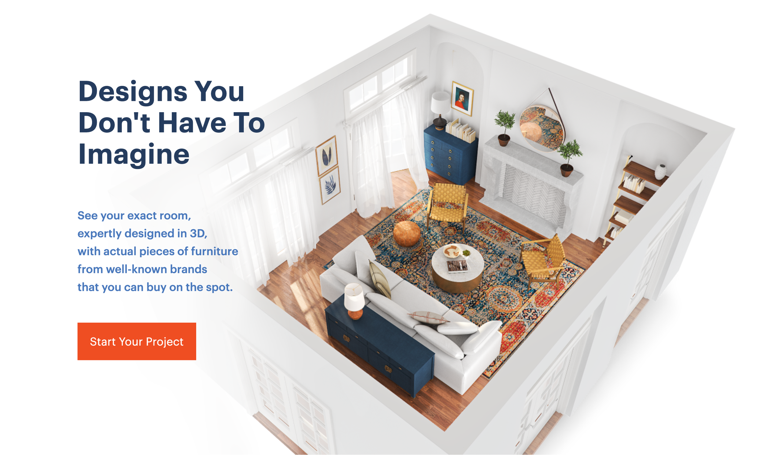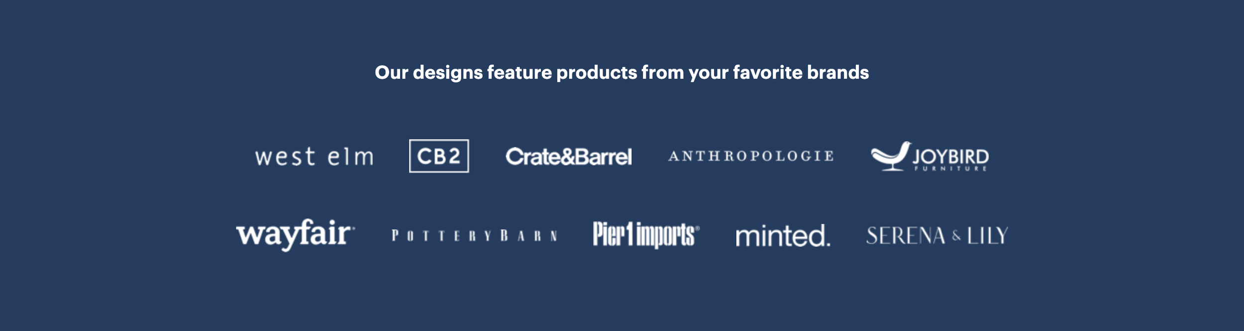Solution: We included a logo wall of the brands that were in our catalog, underscoring that our service was more than just visualizing where to put a couch but a design service that showed you how real furniture that you could actually buy would look in your room.